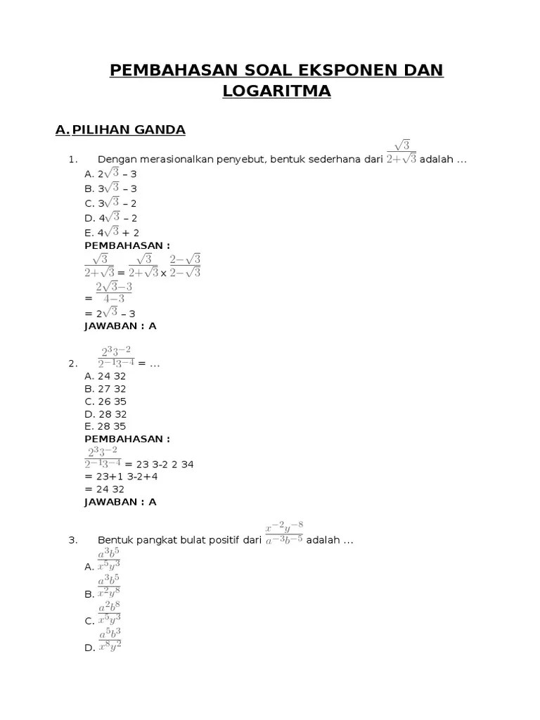 Dengan batas c >= 2 pangkat n. Apabila am atau aⁿ maka kemungkinan hasilnya adalah 0. Daya tampung dari bak mandi tersebut adalah 7000 liter. Kadang para siswa merasa sulit mencari bilangan pokok dari akar pangkat tiga suatu bilangan kubik yang bilangan kubiknya lebih dari 1000 dengan menggunakan cara langsung, cara mencoba atau cara yang lainnya, karena memerlukan waktu yang lama untuk mencari bilangan pokok tesebut dan agar lebih mudah maka yang dilakukan siswa adalah dengan menggunakan kalkulator. Anda harus menghindari karena tidak terdefinisikan. Materi dan contoh soal akar pangkat 3 kelas 6. 10 2 = 10 x 10 = 100 maka akar pangkat dua dari 100 = 10 bilangan hasil perpangkatan pangkat dua adalah bilangan kuadrat sempurna, yaitu: Yang merupakan bilangan kuadrat adalah 4. Atau sebagai sumber referensi membuat soal. Demikian download soal matematika kelas 5 sd bab 2 pangkat dan akar dan kunci jawaban. Contoh cara menghitung akar pangkat 2 dengan eliminasi: Sehingga para sahabat bisa mengerti dan memahami soal akar pangkat 2 yang kami posting untuk anda semua. Jika dijabarkan lebih terperinci, maka bilangan pangkat tiga dan bilangan kubik dasar seperti di bawah ini :